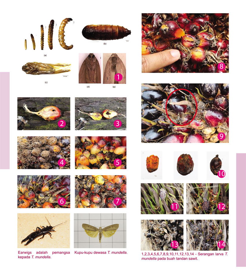 Kupu-kupu buah tandan Tirathaba mundella merupakan salah satu serangga perosak utama di kawasan tanah gambut. Kupu-kupu ini yang dewasa tidak mendatangkan kerosakan terhadap buah tandan sawit sebaliknya larvanya yang membawa kerosakan. Kerosakan terhadap buah tandan sehingga menyebabkan kerugian hasil 50% pernah dilaporkan. Buah tandan yang telah dirosakkan itu membawa kandungan free fatty acid yang lebih tinggi iaitu satu bahan yang menurunkan kualiti minyak sawit mentah. Oleh yang demikian, langkah kawalan amat penting supaya populasinya tidak meningkat sehingga membawa kerosakan yang tinggi.