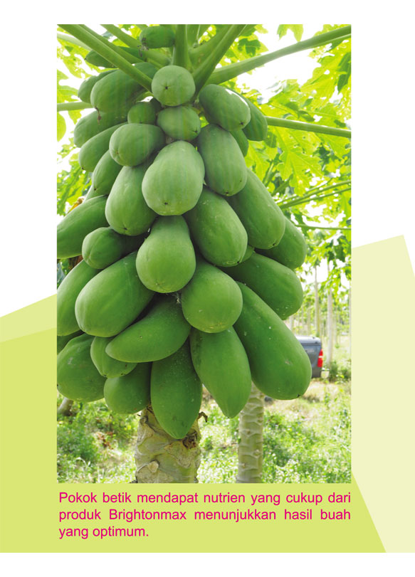 Dari segi hasil, kebun Encik Khoo ini mengeluarkan purata 18 tan papaya setiap minggu merangkumi buah gred A melebihi 70%. Beliau tidak menjarangkan buah yang lebat di atas pokok kerana pasaran di Utara Malaysia lazimnya lebih suka terhadap buah yang lebih kecil. Untuk maklumat lanjut sila hubungi Brightonmax Sdn Bhd di talian 07-595 3580 / 595 3680.