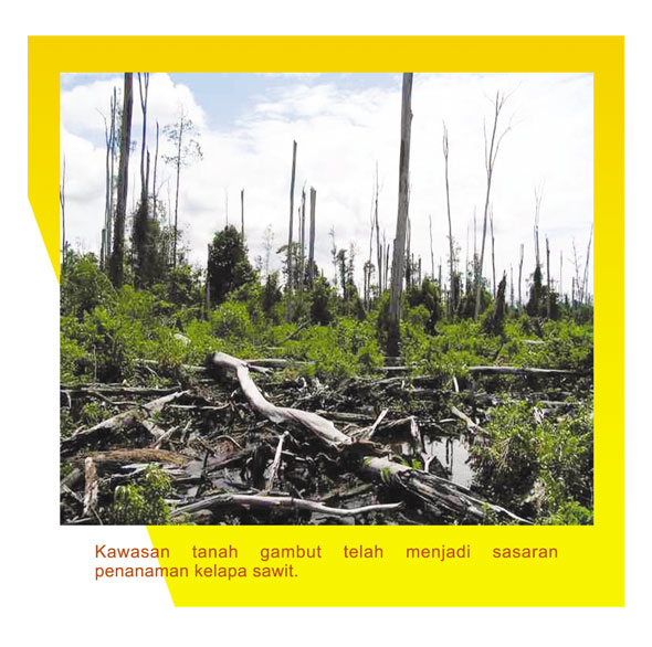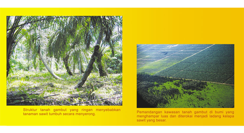 Tanah gambut (peat soils), walaupun dikategorikan sebagai tanah pinggiran (marginal soil) dan tidak sesuai untuk penanaman kelapa sawit, tetapi ia masih diusahakan secara besar-besaran di sektor penanaman ini terutama di Negeri Sarawak yang mempunyai kawasan tanah gambut yang luas. Keadaan yang sama juga wujud di Indonesia. Gejala ini adalah disebabkan oleh dua faktor, yang pertama ialah tanah pertanian yang sesuai untuk penanaman telah hampir habis diterokai, apatah lagi tanaman kelapa sawit yang amnya memerlukan kawasan penanaman yang besar. Faktor kedua ialah kawasan tanah gambut biasanya menghampar luas sebagai hutan paya. Maka dengan itu, setelah hutan dara tersebut dibersihkan, ia muncul sebagai kawasan lapang yang lebih sesuai untuk tanaman kelapa sawit kerana keluasan yang sangat besar.
