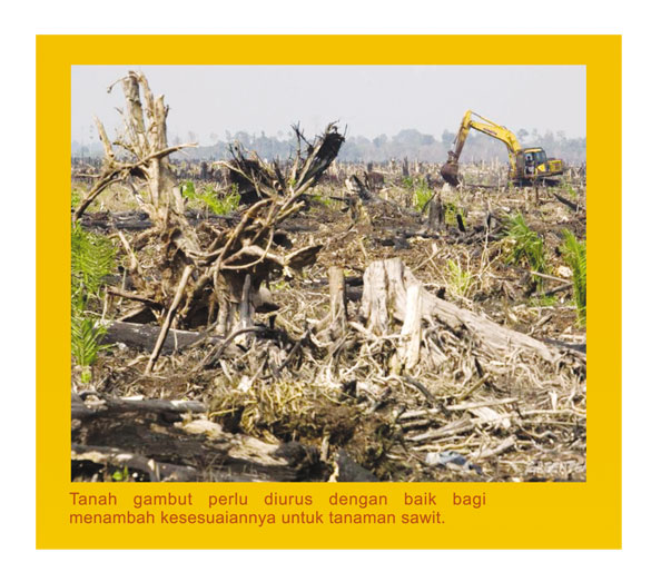 Dengan teknologi pengubahsuaian tanah gambut yang sedia ada, pembangunan tanah bagi penanaman kelapa sawit telah dapat diusahakan. Biarpun begitu, pengusahaan tersebut memerlukan kos yang tinggi, dengan itu, ia harus dijalankan secara besar-besaran supaya memperolehi kessn ekonomi berskala. Maka tidak hairanlah kebanyakan pengusaha ladang tanah gambut terdiri daripada syarikat perladangan yang besar. Perkara yang penting dalam pembangunan tanah gambut meliputi penanganan masalah paras air, ketidakstabilan tanah serta pembinaan landasan pengangkutan buah tandan segar. Mengenai sifat kmia tanah gambut yang kurang memadai untuk tanaman kelapa sawit, ia mudah untuk diselesaikan, iaitu mengadakan program pembajaan yang baik bagi memulih dan mengekalkan kesuburannya.