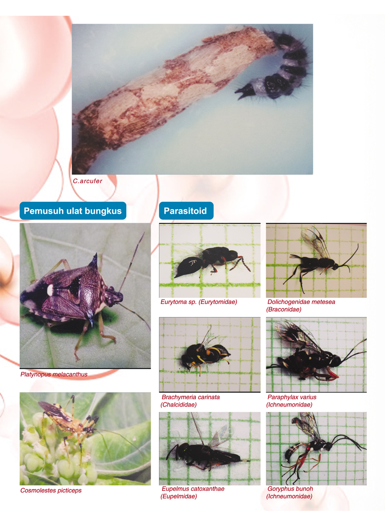 Serangga bermanfaat yang dimaksudkan merangkumi 2 jenis iaitu pertama pemusuh (predator) iaitu serangga berbadan lebih besar yang akan menyerang ulat bungkus secara terus. Kedua ialah parasitoid, ia sejenis serangga berbadan lebih kecil yang akan menusuk tiub pembiakan ke dalam badan ulat bungkus kemudian menelur di dalam. Ulat bungkus akan mati setelah telur tersebut menetas. Dengan kata lain, populasi kedua-dua jenis serangga bermanfaat ini jika dapat dibanyakkan di ladang sawit, maka ia dapat menjalankan kawalan berkesan terhadap serangan ulat bungkus ke atas tanaman sawit.